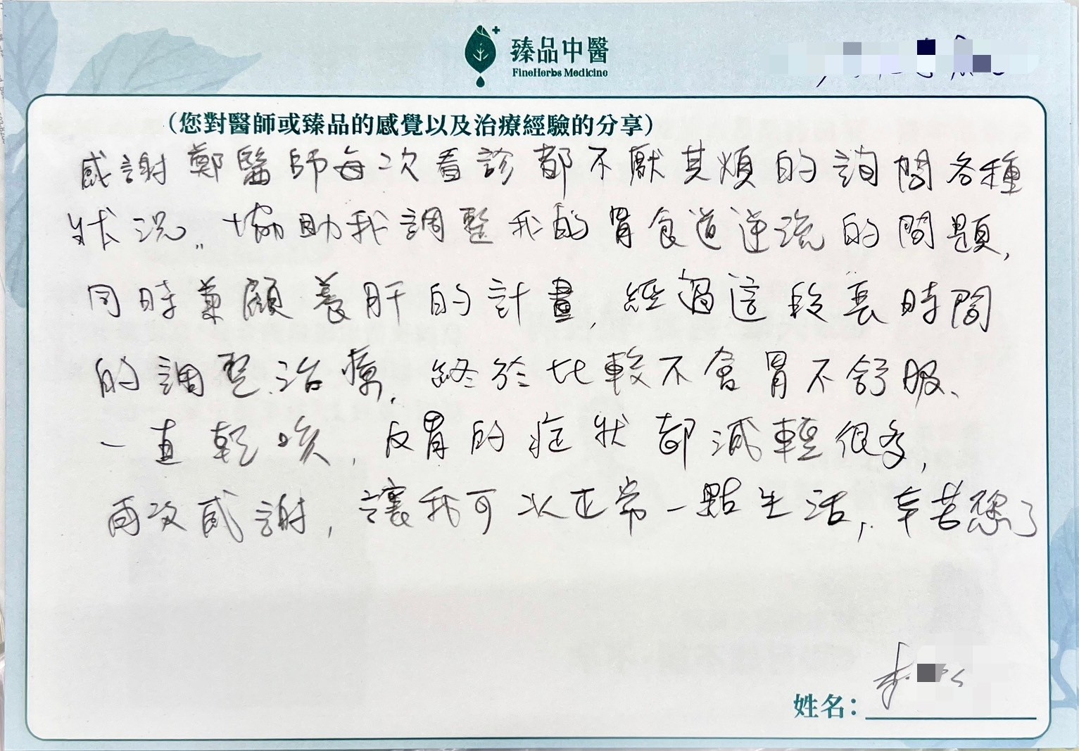 感謝鄭醫師每次看診都不厭其煩的詢問各種狀況,