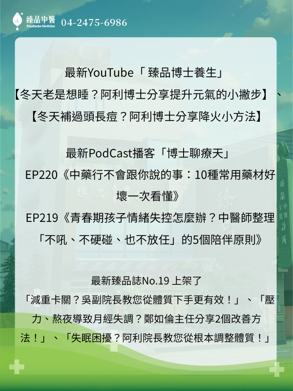 臻品中醫於1999年成立,院長陳勇利為中西醫學博士,擅長以中西醫學雙優點合併的角度、醫治疾病,主治重大疾病、癌症,副院長吳啟銘醫學博士,除了在大學部教授課程之外,臨床上更以骨科內兒科治療見長,另一位婦科女碩士鄭如倫醫師、則以婦科皮膚科深獲病人好評。