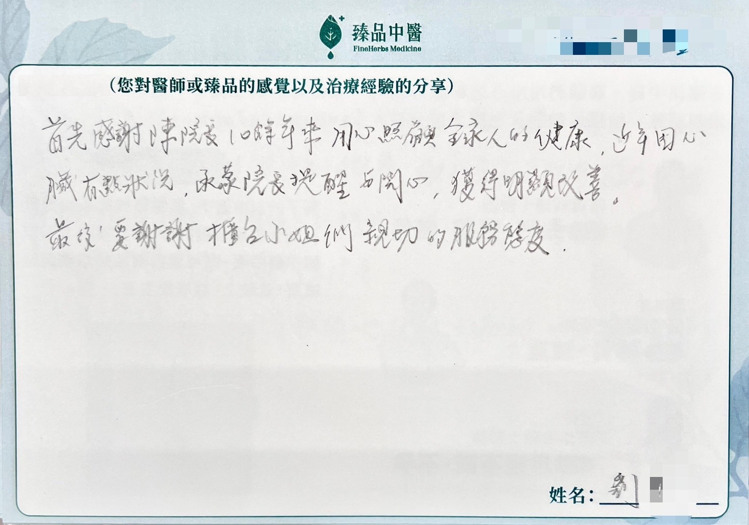 首先感謝陳院長10餘年來用心照顧全家人的健康